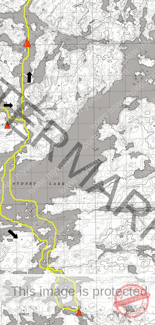 Here we sit on the entrance to Sydney Lake … we arrived here yesterday at about 4:30 and decided to camp rather than attempt the approximately 2 hour crossing of Sydney.